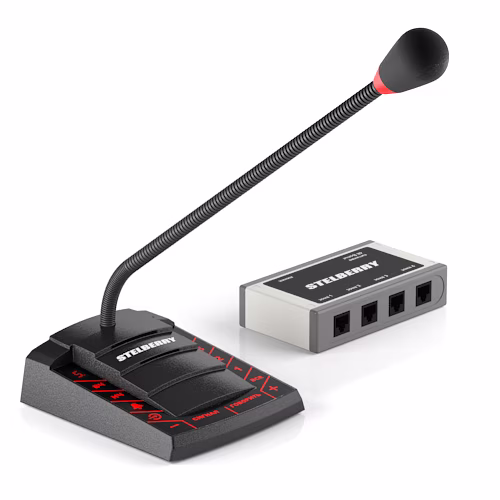 Пульт громкого оповещения STELBERRY F-742 оснащён направленным HD-микрофоном с защитой от электромагнитных помех.